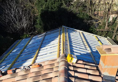 - Isolation sous-toiture (panneaux rigides, laine de roche)